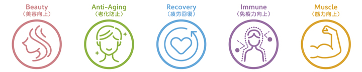 今回提供を開始する春夏メニューも、HIGH FIVE SALAD独自のBeauty(美容)、Anti-Aging(アンチエイジング)、Recovery(疲労回復)、Muscle(筋力アップ)、Immune(免疫力向上)の5つの効能に注目して分類。それぞれの効能が期待できる食材を使い、カラダが求めているパワーに合わせ、お好きなパワーサラダを選べるメニューをそろえました。